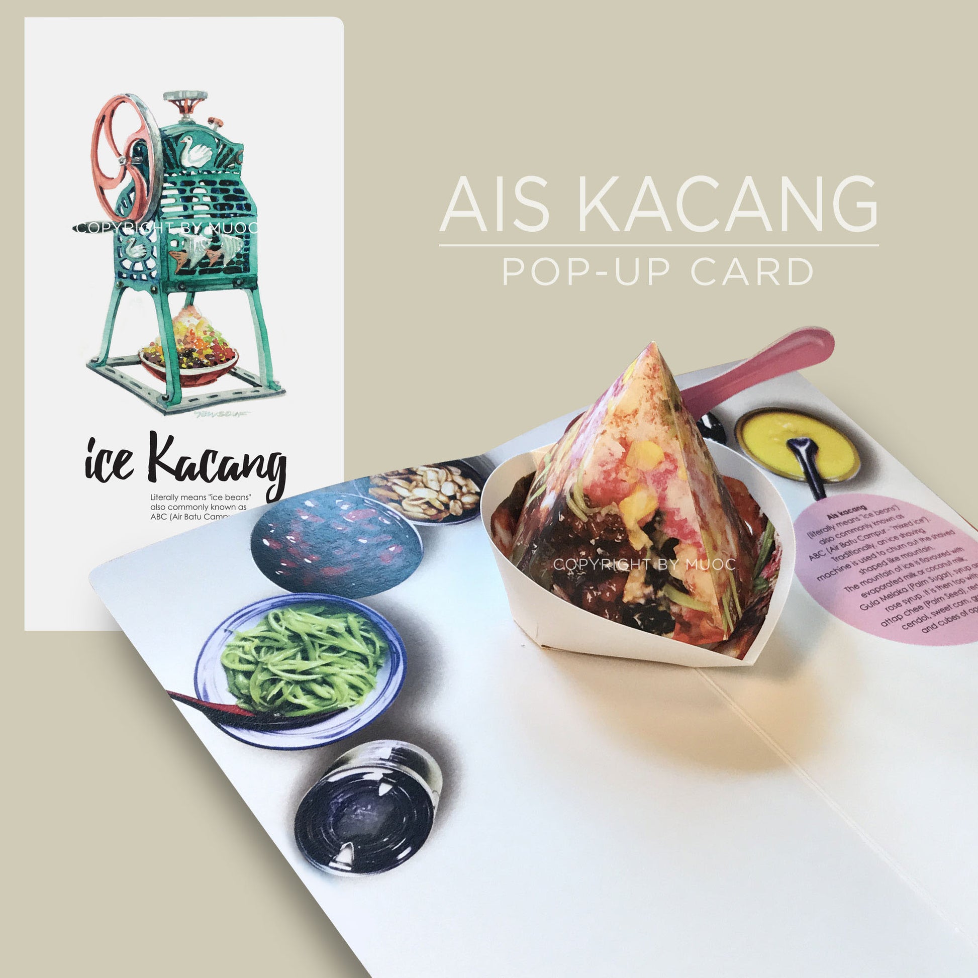 3D pop-up cards featuring illustrations of Malaysian delicacies, complete with an envelope. A card designed for your heartfelt message, ideal for any special moment.