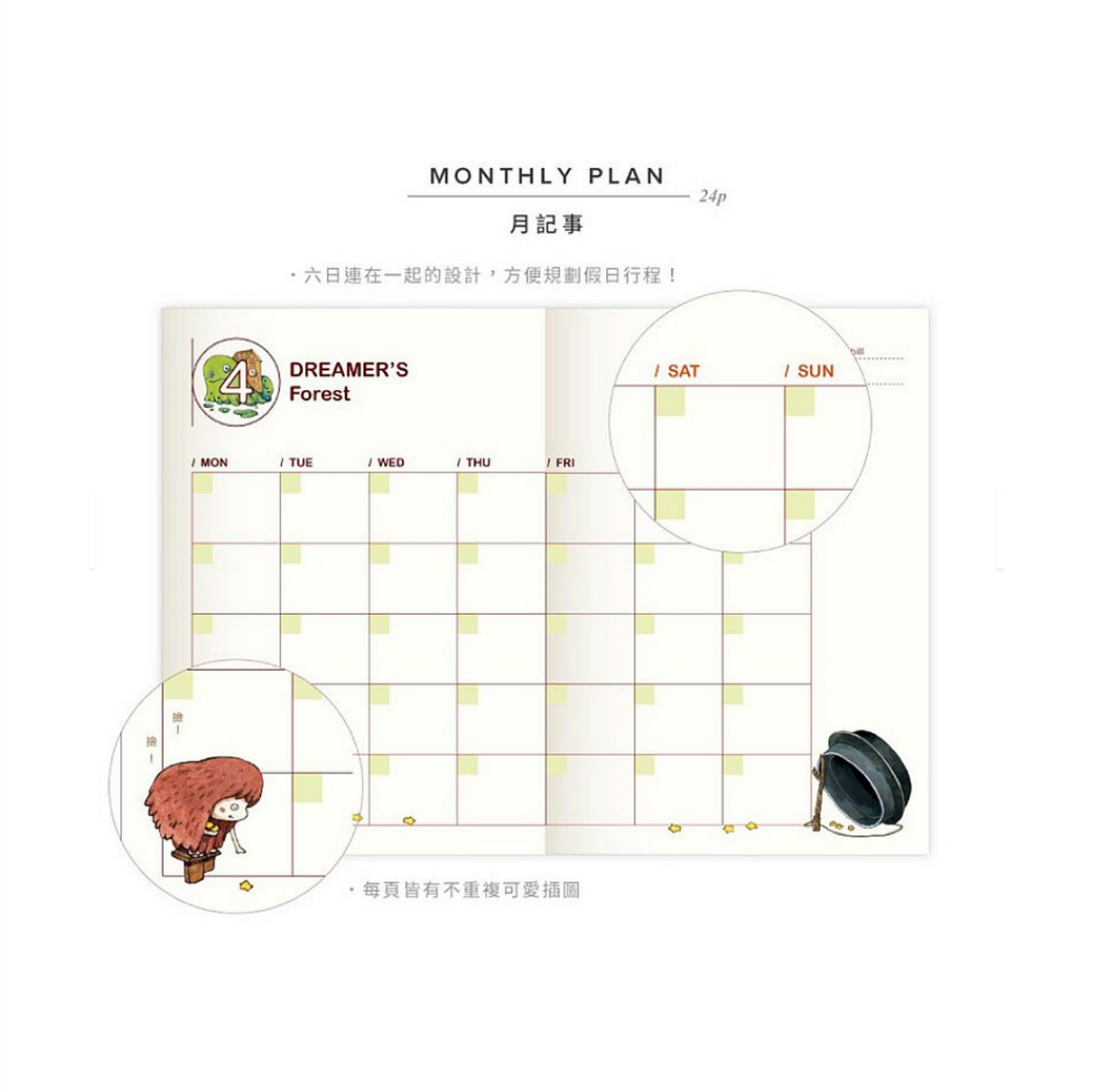 A lovely monthly planner with official watercolor art by afu!