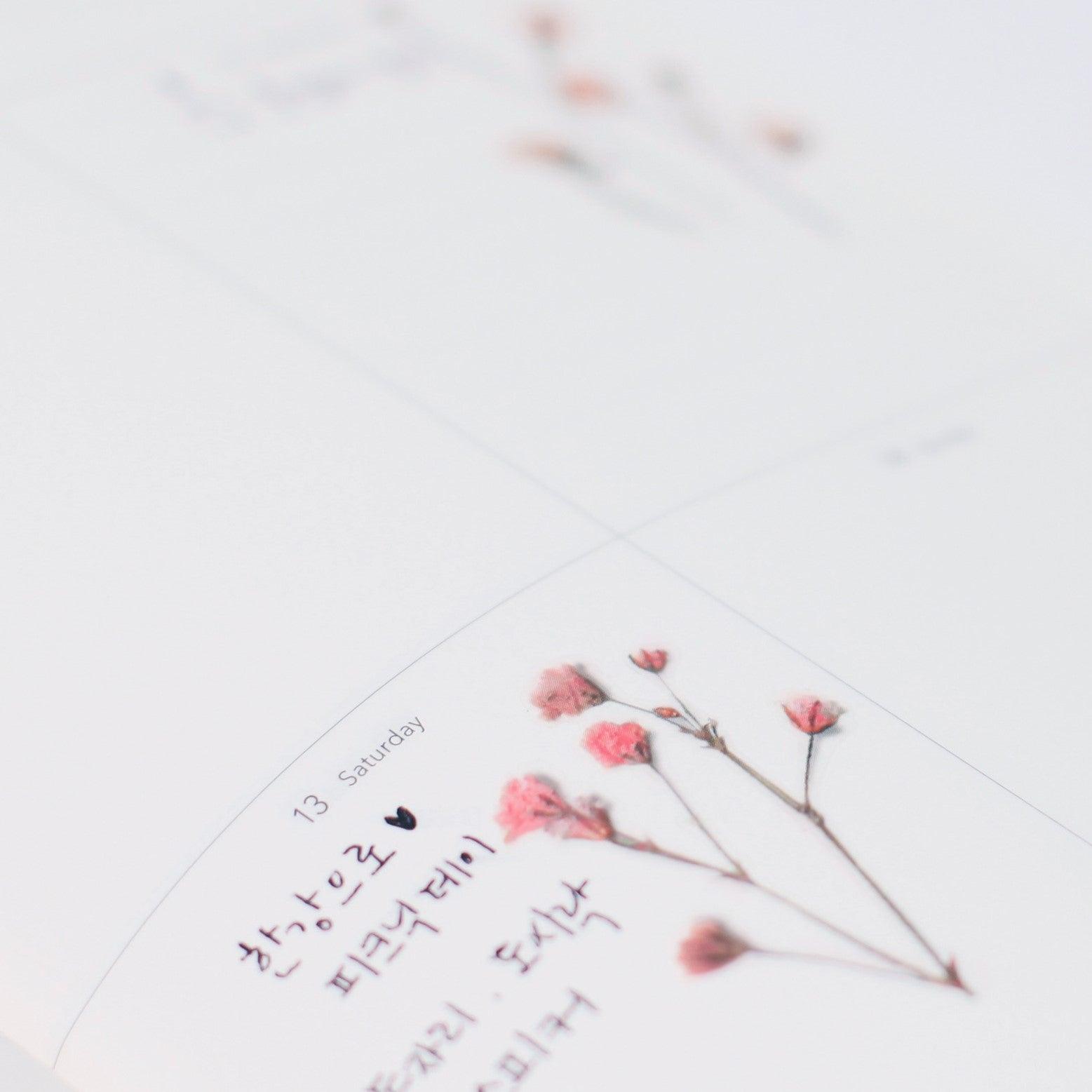 It is a Gypsophila press sticker that is made by pressing its flowers and leaves. Gypsophila means pure heart, successful love in the language of flowers. Because of its clean image, it is well matched with the word ‘pure’ and it is also well matched with other flowers as well. Meet this gypsophila and bring your childhood memories of walking on the street and picking beautiful flowers to put it inside the book until it dries.