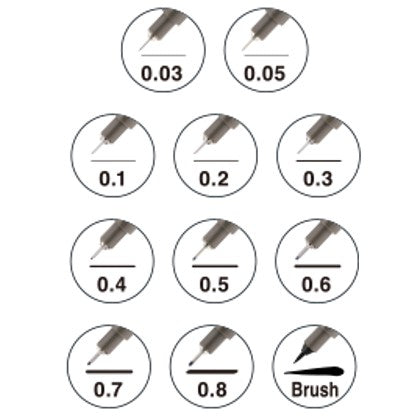 The acid free, water based pigment ink in the Artline technical drawing pen is water resistant and fade proof. The metal furrele is ideal for template and ruling work, making this range ideal for all general writing, drawing and technical drawing.