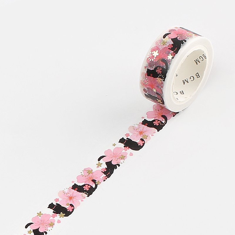 BGM Washi Tape | Cherry Blossoms / Black Cat