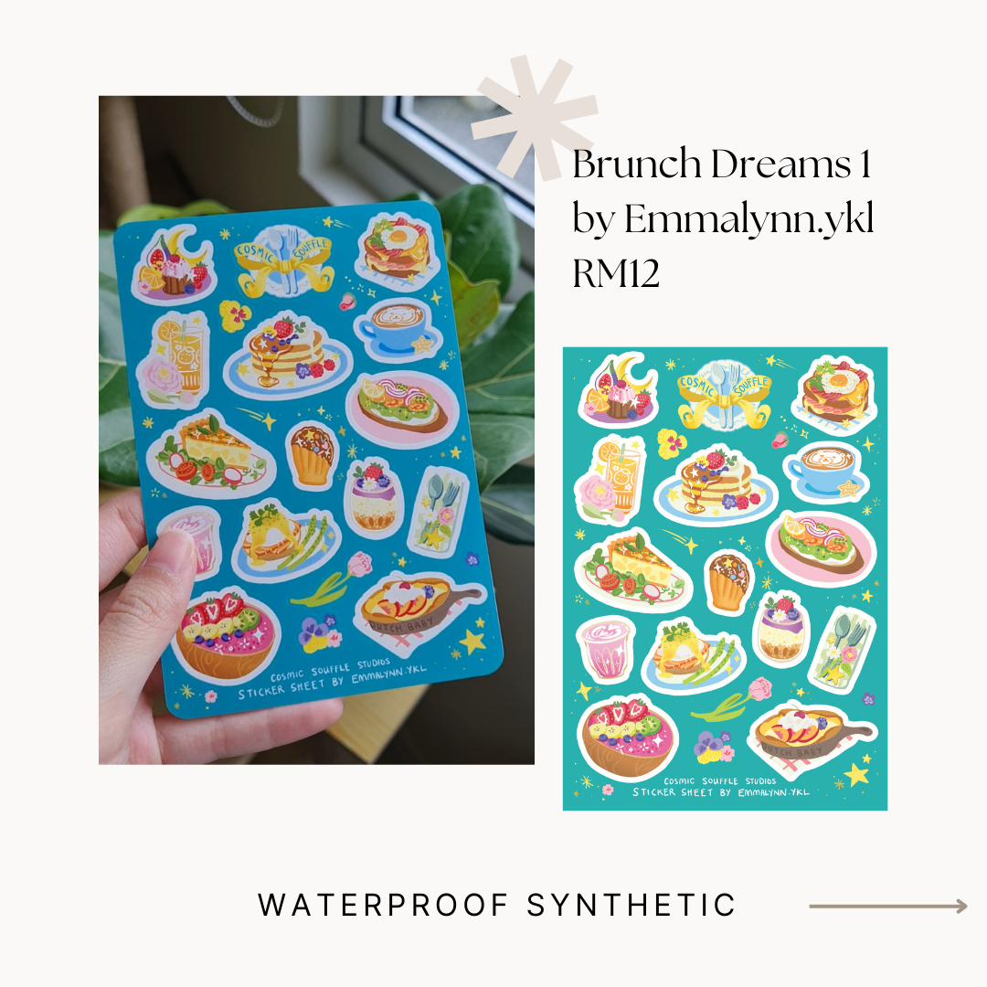 All the things we'd love to eat at brunch in a sticker sheet. Perfect for recording the little special moments in your daily journaling. Waterproof, dimensions are 14.2cm(h) x 9.8cm(w)