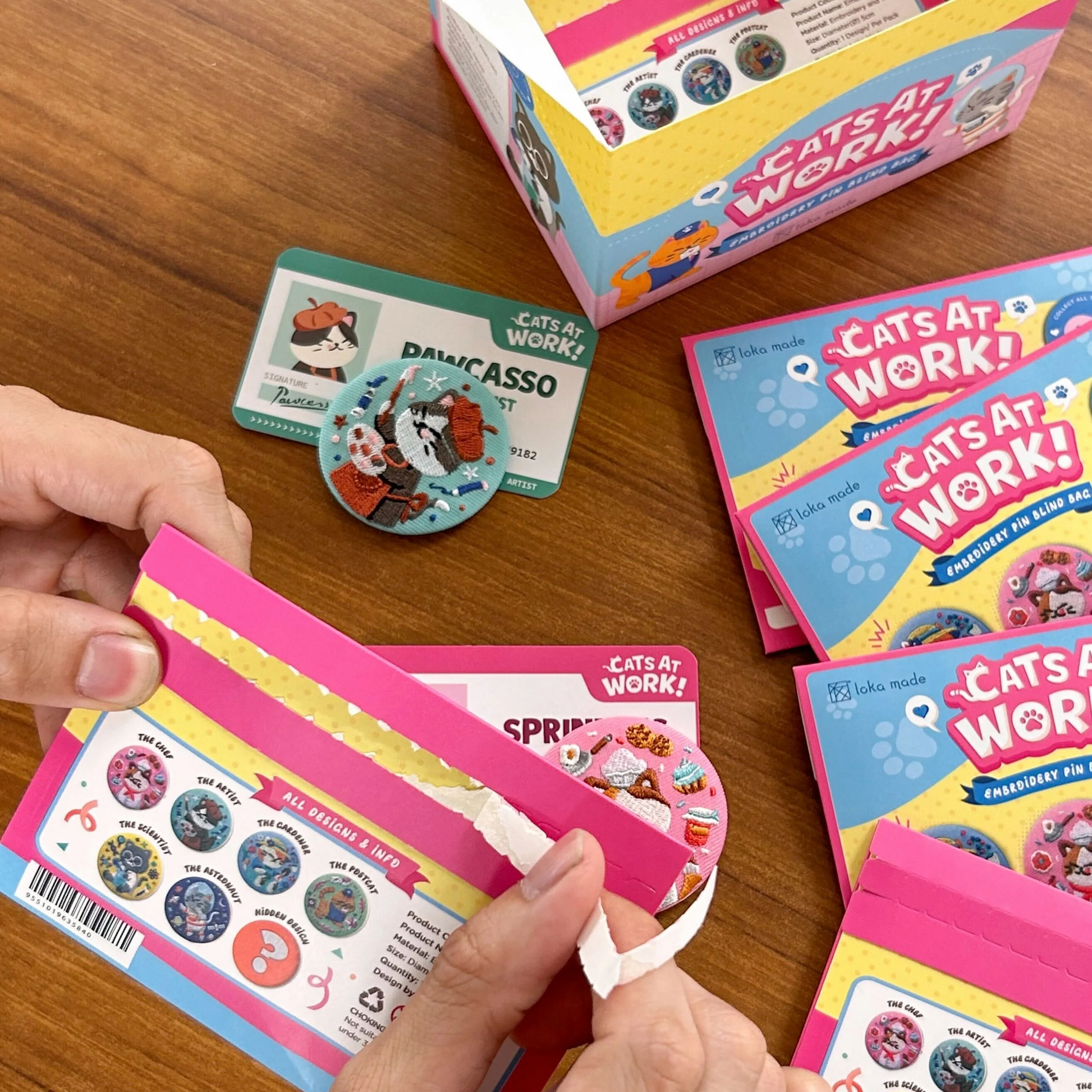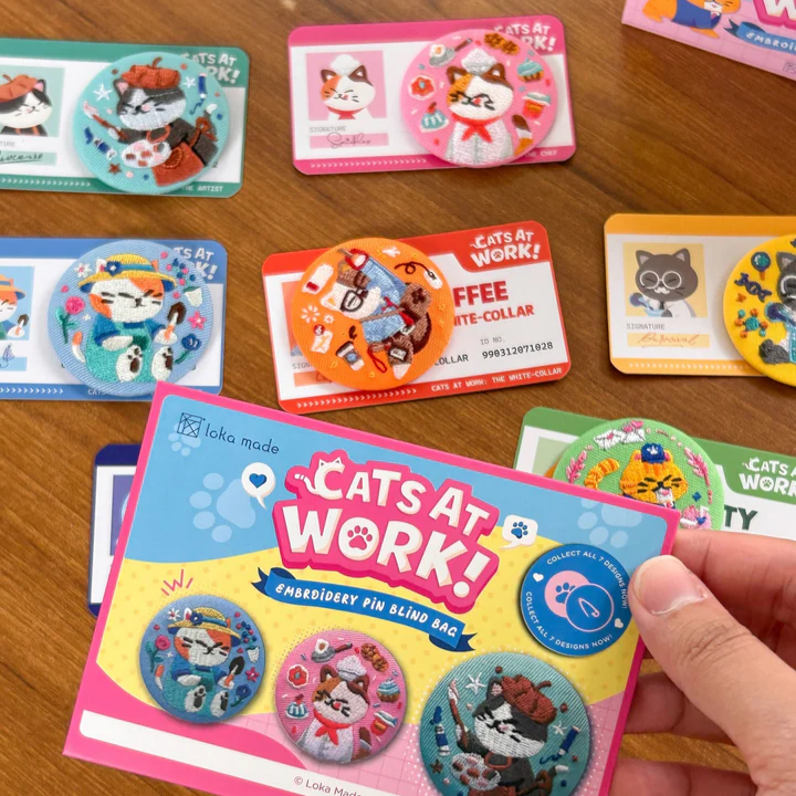 Cats At Work have clocked in! ๐ Our purr-fectly adorable embroidery pin blind bags bring cuteness to the daily grind! ๐พ๐ผ These purr-fessional furballs are clocking in with 7 unique designs, each showcasing a different cat in their professional element ๐ฑ๐ชWith one secret design hidden for the surprise, these pins are ready to brighten up your workday (or any day)!