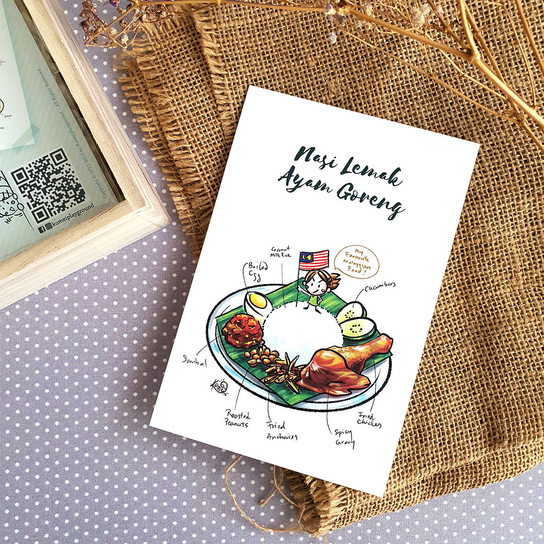 This is a set of 3 Malaysian favourite food postcards featuring with a cute little girl called Kano, enjoying travelling in Malaysia. Each set contains 3 different designs: