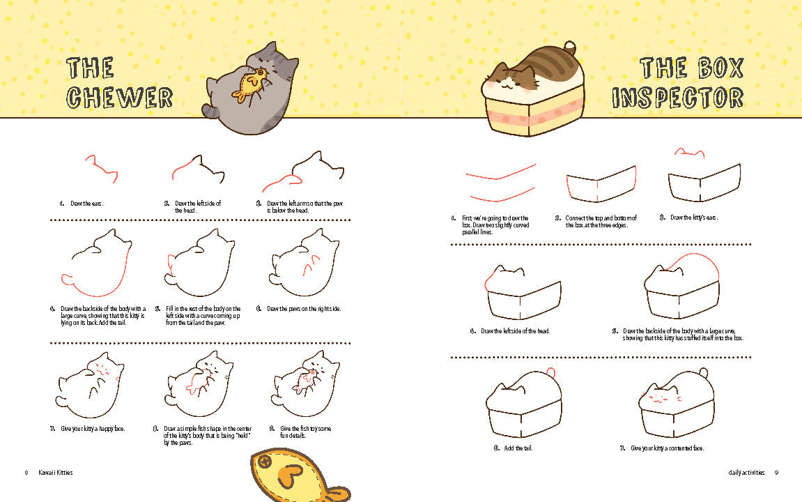 In Kawaii Kitties, popular Instagram artist Bichi Mao (@bichi.mao) perfectly captures cats' different attitudes through 75 step-by-step tutorials that show you how to draw all kinds of cute cats doing all sorts of silly things, including: