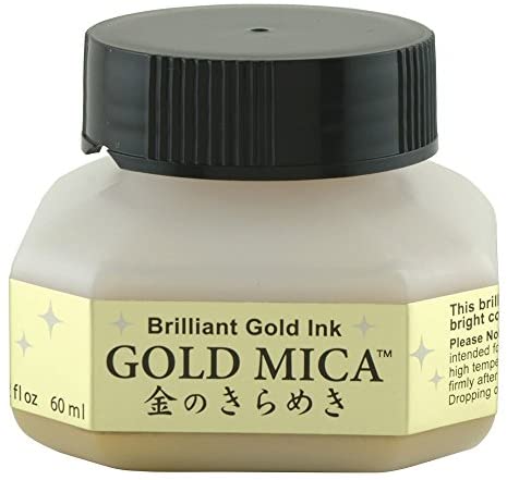 For Gold Mica & Silver Mica, the luminous ink contains Mica particles combined for a water-based pigment ink available in a 60ml bottle. A true metallic paint that is highly effective on dark colored paper.