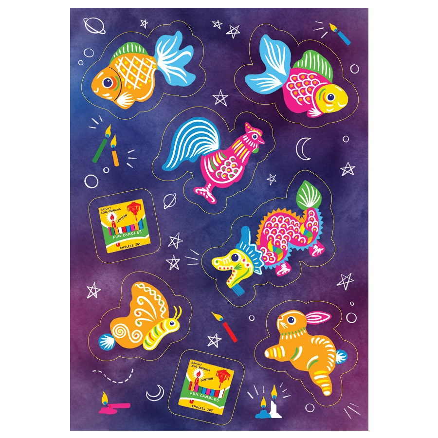 Summary: Put all your wishes into beautiful lanterns and carry them to the stars! This bite-sized A6 transparent sticker sheet filled with nostalgic animal lanterns will spruce up any journal entry or customized mid-autumn greeting card.