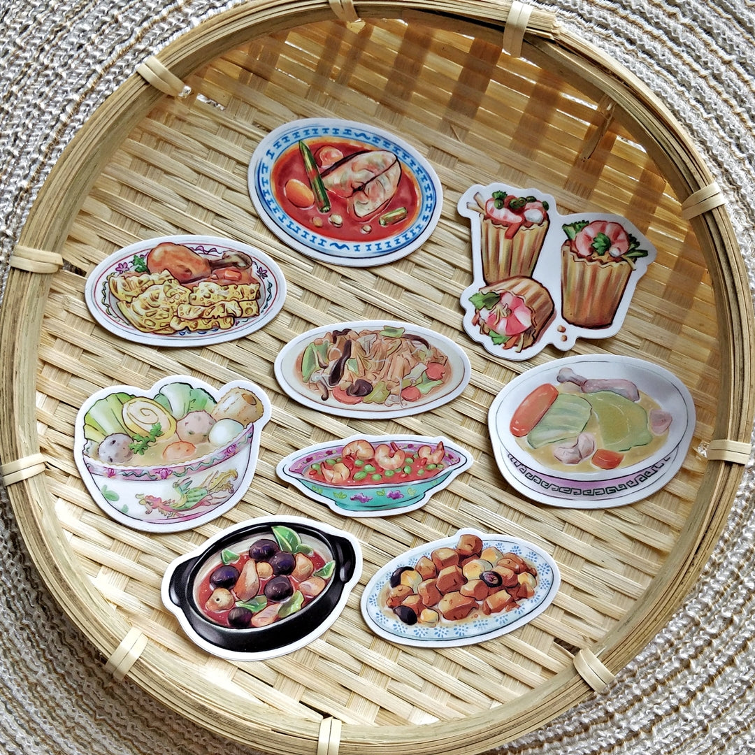 Contains 9 matte vinyl stickers, each between 2-4 cm in height and 5 cm in length.