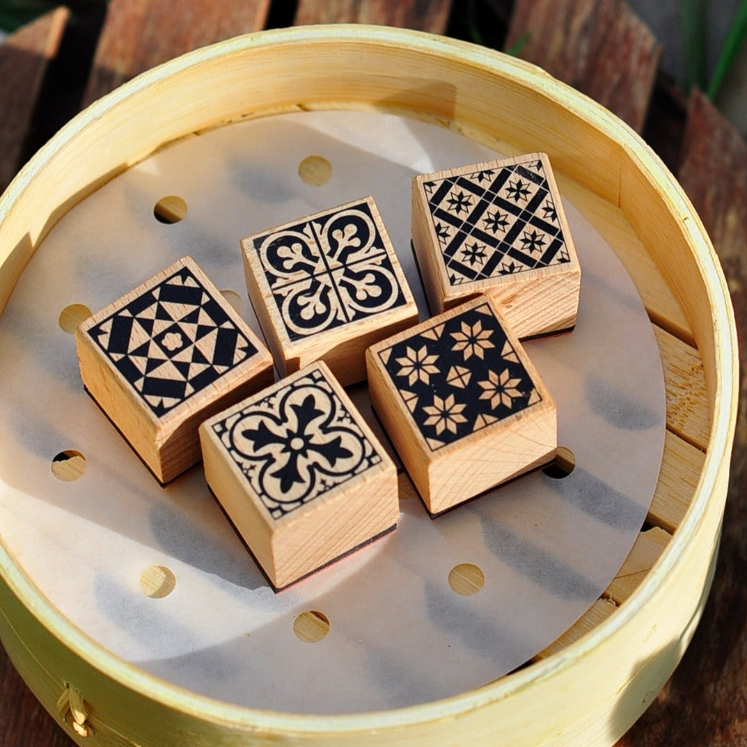 Peranakan Wooden Rubber Stamps Set (of five)- Bloom