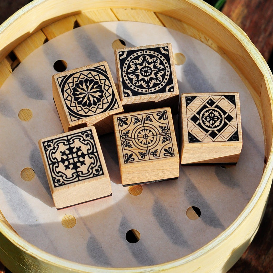 Five designs of Peranakan rubber stamp in a set, 2cm each.